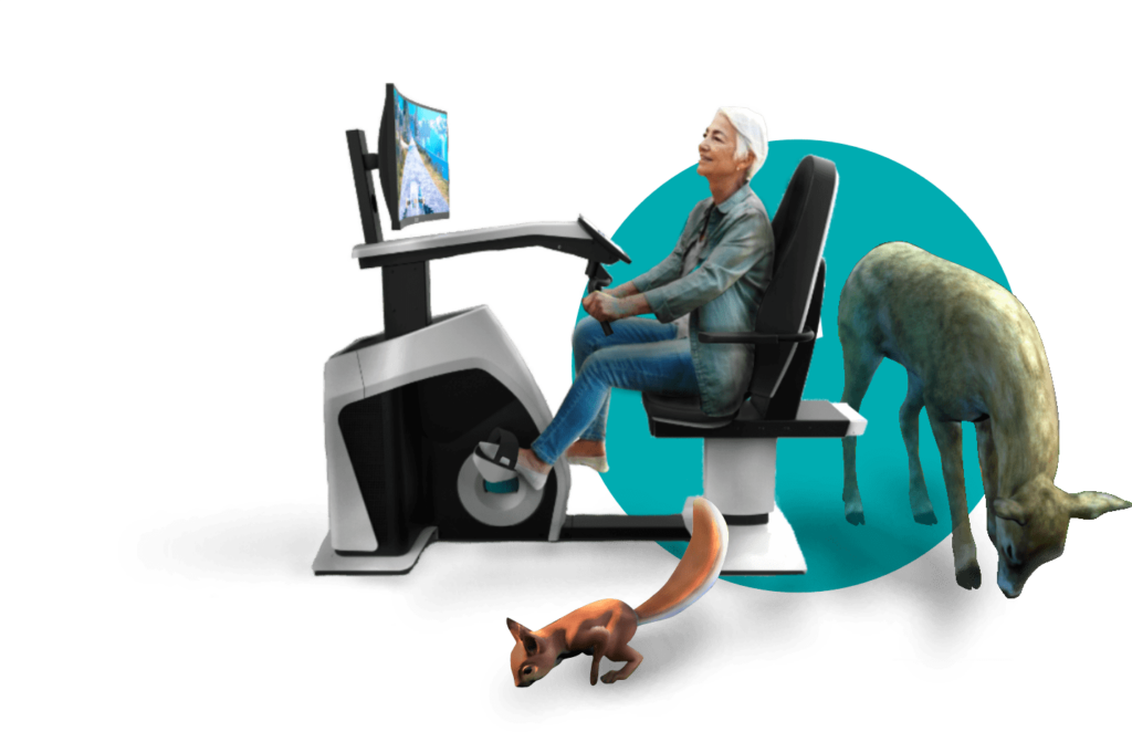 During the ride, the user encounters elements that they must collect or avoid, leading them to mentally stimulating activities. Workshops with regulated difficulty levels are available through the Cycleo Board management platform.